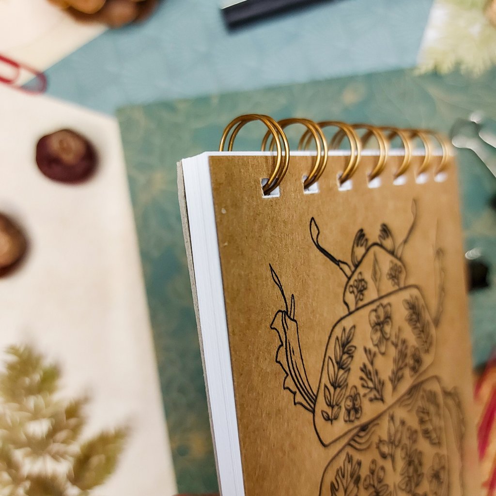 Menší formát akorát do kapsy. Pro skicování v plenéru, zaznamenání geniální myšlenky, která tě zastihne v autobuse, nebo pro věčné to do listy - zapsat, odškrtat, vytrhnout. Černý design na kraftovém papíru je jedna z našich oblíbených kombinací. Působí přirozeně, tradičně i moderně a hodí se pro každého. A bronzová kroužková vazba se ještě k ničemu nehodila lépe :)