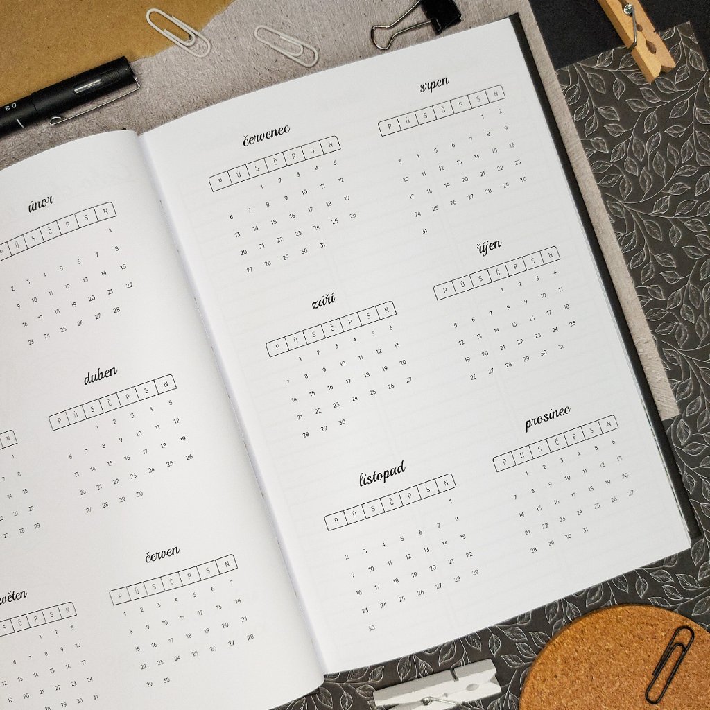 Tečky v našem diáři nabízejí maximální flexibilitu a svobodu – můžete si podle nich snadno vytvořit jak linky, tak čtverečky, nebo je nechat volné a využít prostor přesně podle svých představ. Díky tečkám se nemusíte omezovat, můžete psát a tvořit, jak vám to zrovna vyhovuje.
