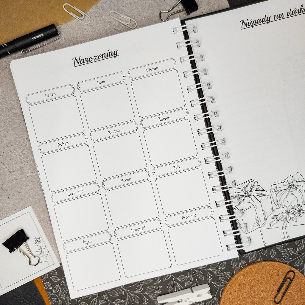 - Prázdné stránky pro nápady na dárky, knihy k přečtení, filmy a spoustu dalšího…
