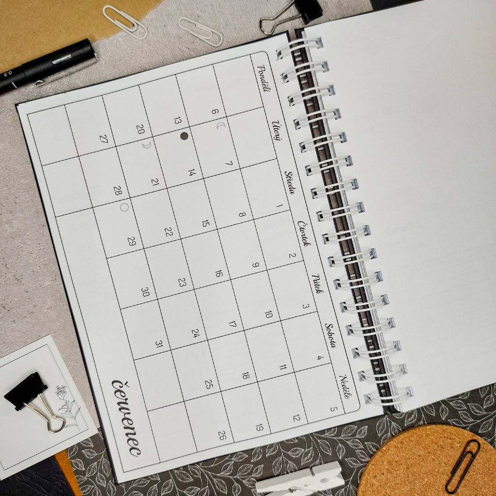 Tečky v našem diáři nabízejí maximální flexibilitu a svobodu – můžete si podle nich snadno vytvořit jak linky, tak čtverečky, nebo je nechat volné a využít prostor přesně podle svých představ. Díky tečkám se nemusíte omezovat, můžete psát a tvořit, jak vám to zrovna vyhovuje.