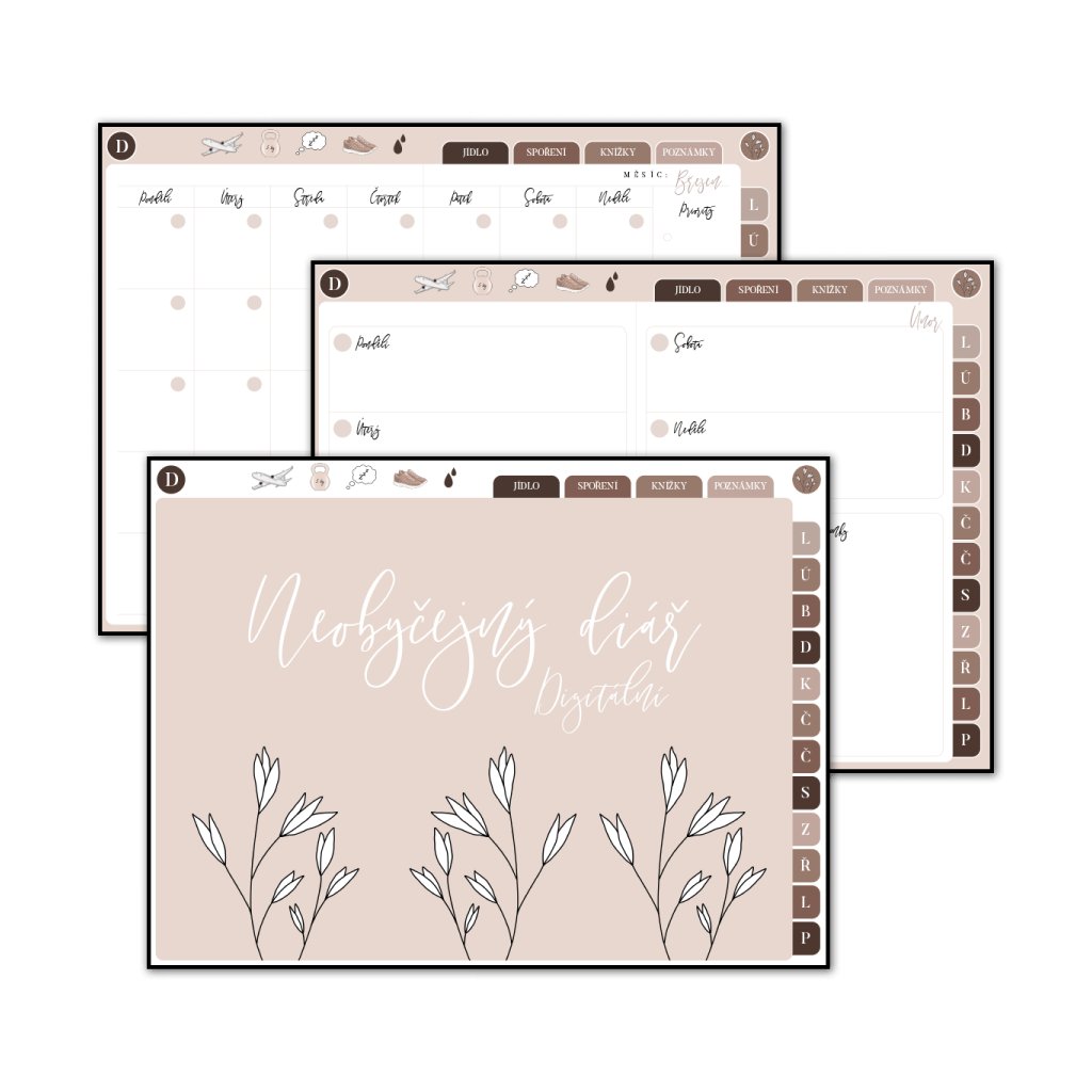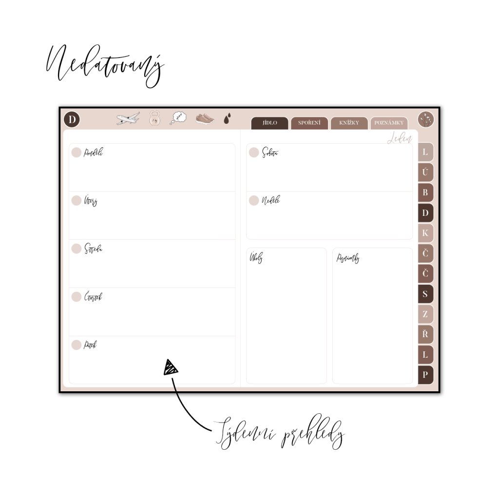 Stránky se dají kopírovat kolikrát budete potřebovat. V diáři jsou předpřipravené stránky týdenního přehledu, ale na konci máte i denní přehled, který si můžete přidat kamkoliv potřebujete.