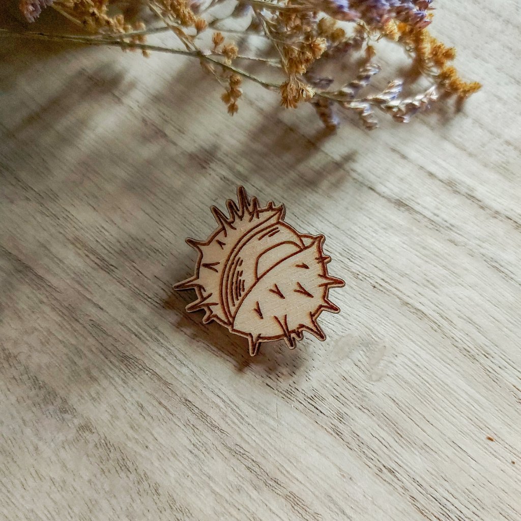 Dřevěná brož Kaštan