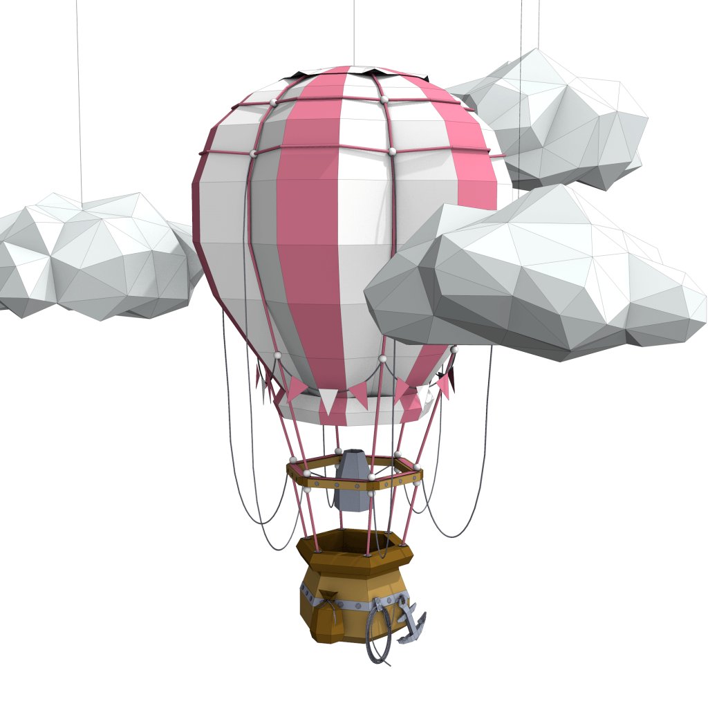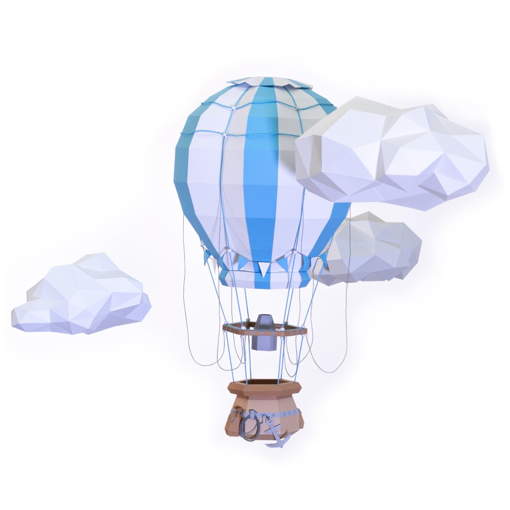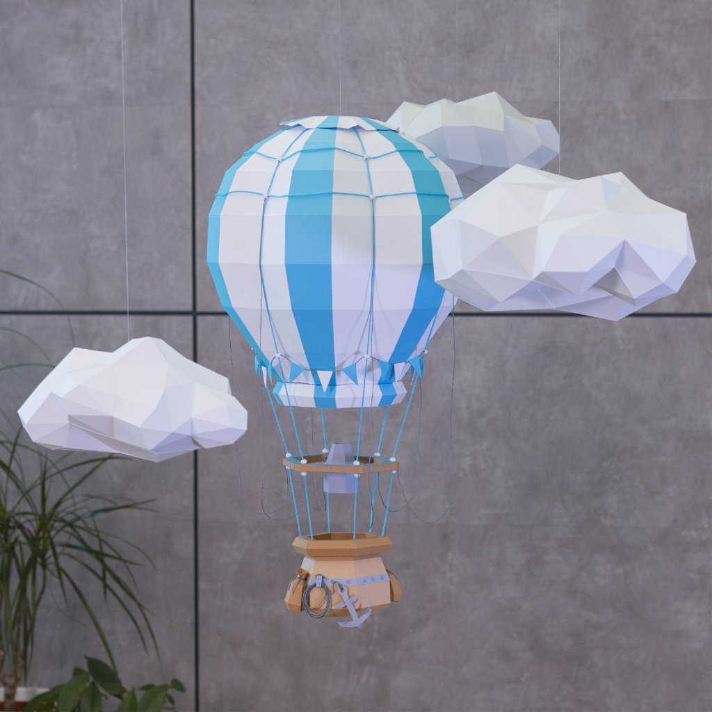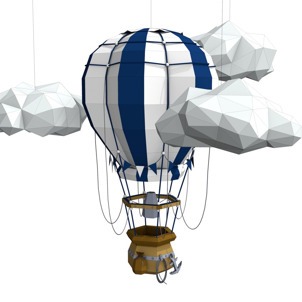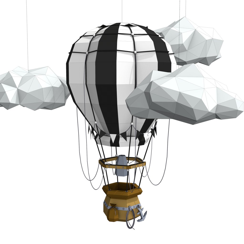 Vydejte se na legendární cestu kolem světa na horkovzdušném balonu. Minimalistický model geometrického tvz. low-poly stylu rozzáří dětský pokoj, čekárnu, herní kout nebo výlohu vašeho obchodu i cestovní kanceláře.