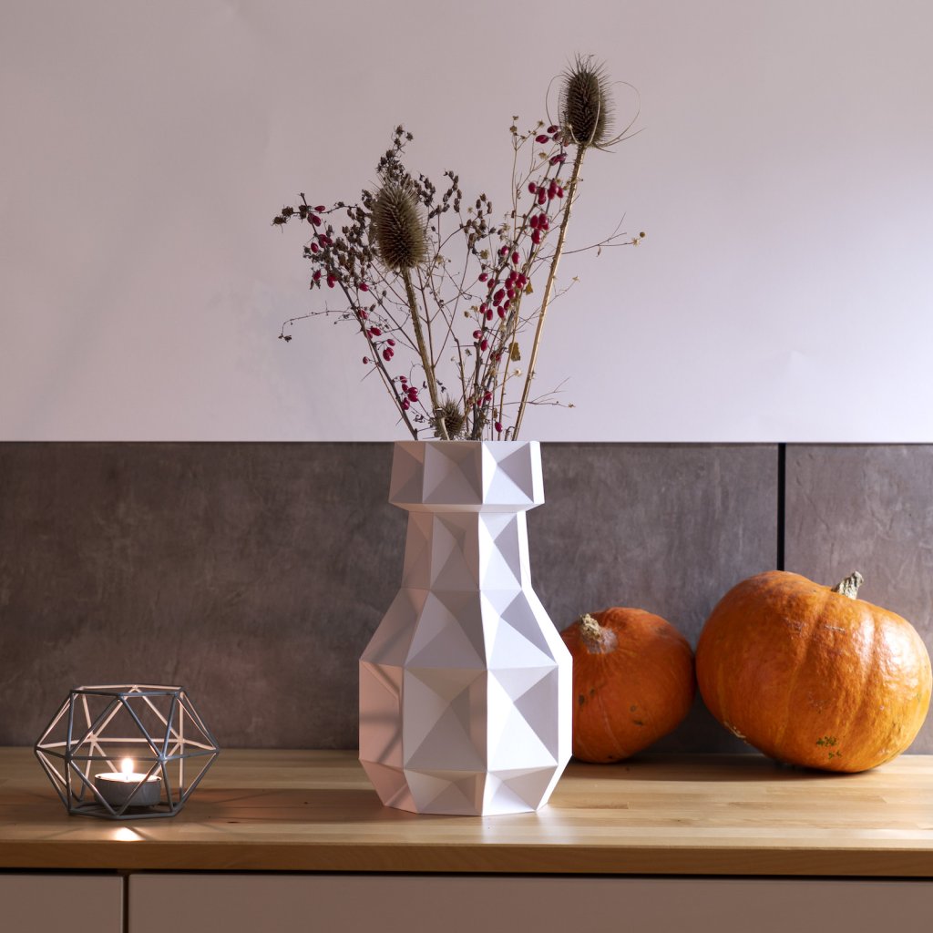 Model této kubistické vázy je naprosto unikátní tím, že vám dovolí nalít do ní vodu a dopřát tak ideální podmínky i živé řezané kytici. Jak je to možné, když je z papíru? Uvnitř vázy je dutina na plechovku od 0,5 l nápoje. Už samotný ekologický papírový model tak dává možnost tzv. upcyclingovat plechovku, která by jinak skončila mezi odpadky. Voda, popř. kamení či písek v plechovce navíc dodají celému modelu stabilitu, takže nehrozí převržení ani v průvanu.