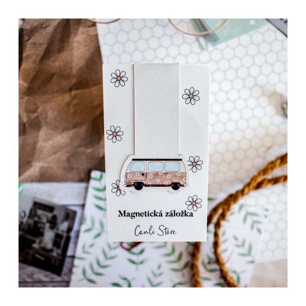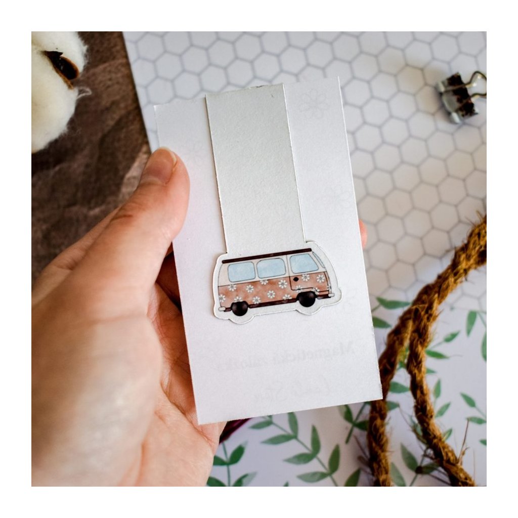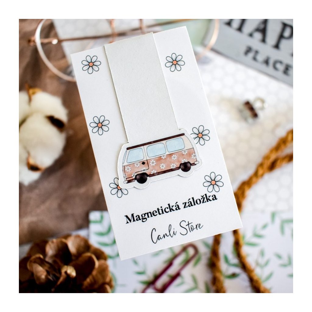 Také rádi čtete, ale neustále ztrácíte záložky? Vkládáte do knížek co vám pod ruku přijde, ať už to jsou lístky od autobusů, poznámkové papírky, účtenky a mnoho dalšího, co nevypadá na první pohled zcela hezky? Nebo máte rozečteno několik knih a ve všech potřebujete mít jednoduše přehled. Magnetická záložka minivan tento problém vyřeší a už ji nikdy neztratíte! Díky magnetickému papíru, záložka drží připnutá na stránce a nikam neklouže. Ilustrace minivan je univerzální pro všechny milovníky retro a květinové doby.