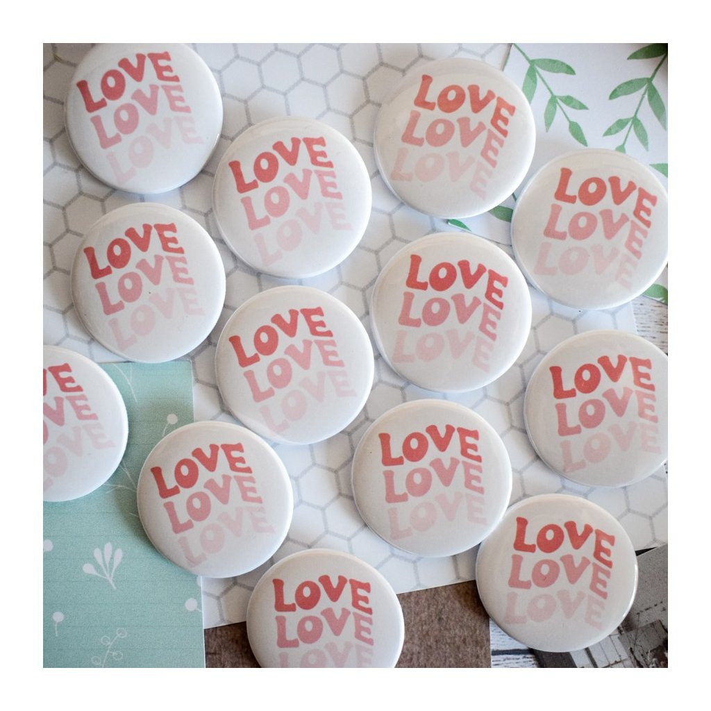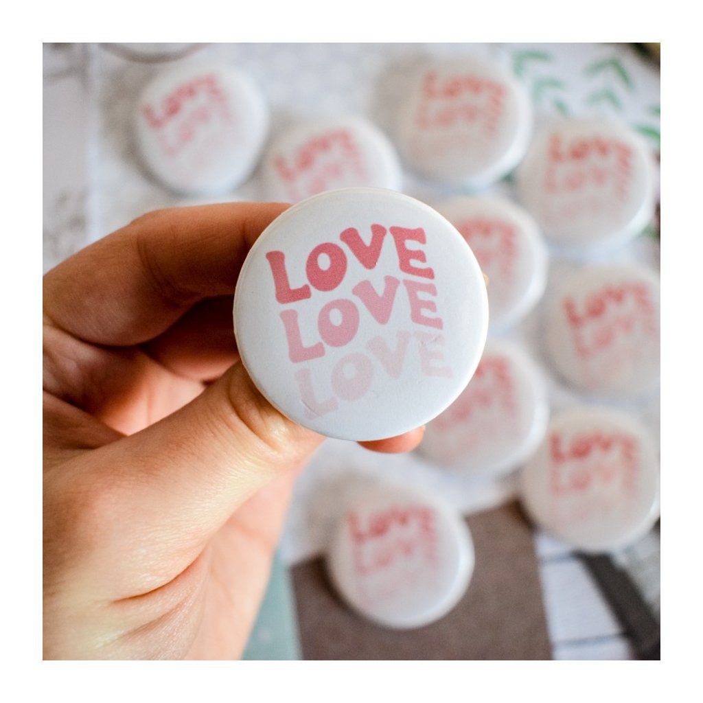 Placka s nápisem love se bude vyjímat nejen na Valentýn, ale po celý rok všem mírumilovným lidem, co chtějí dát najevo, že láska je v životě důležitá. :)