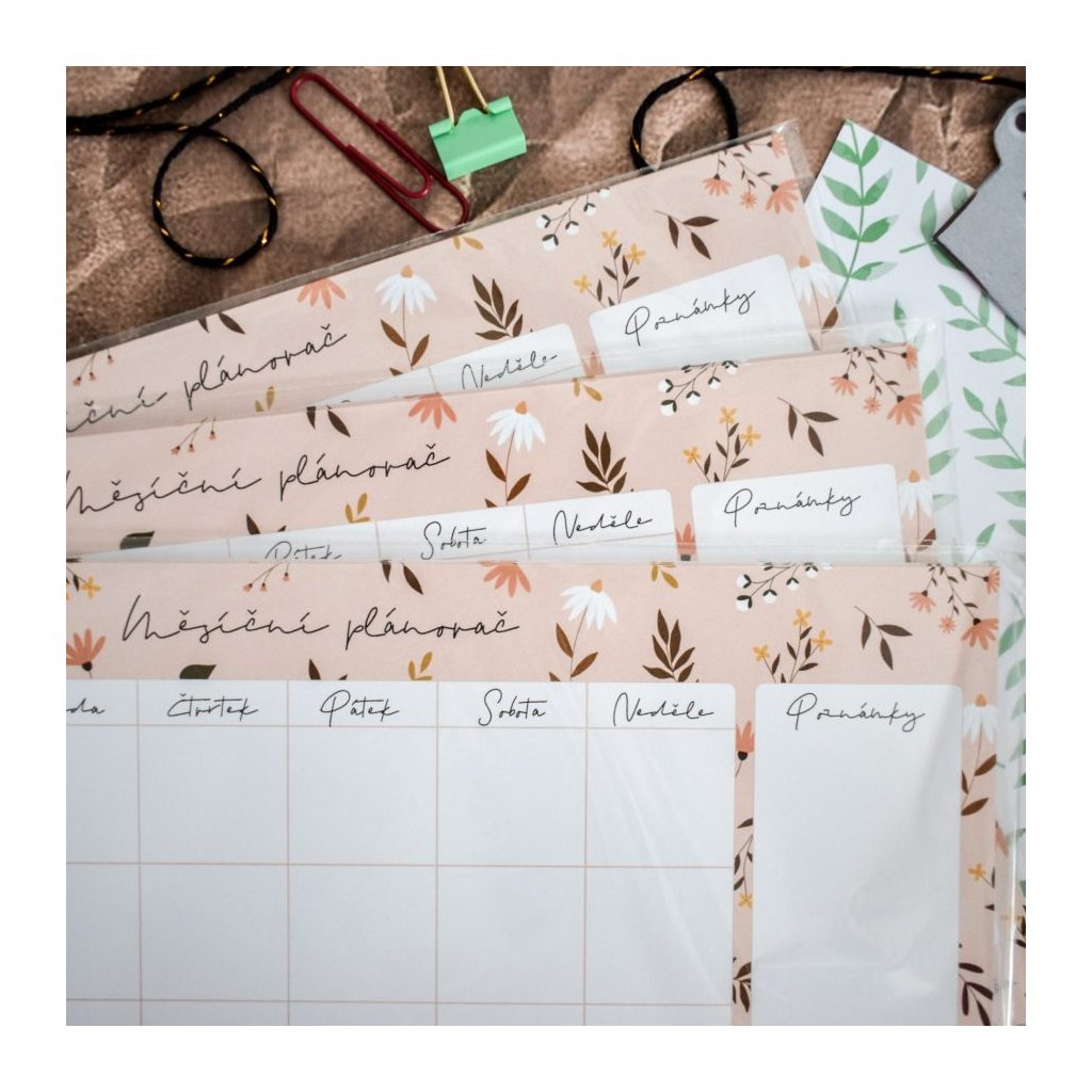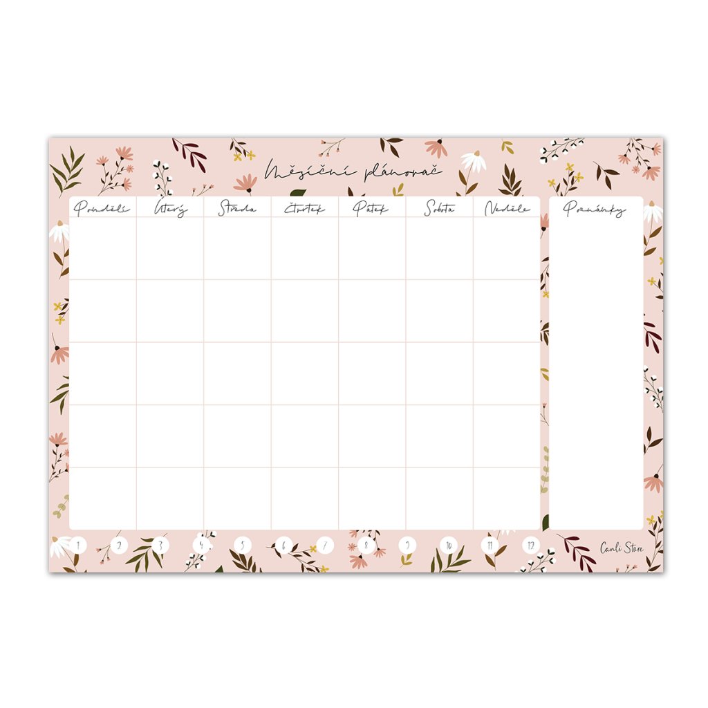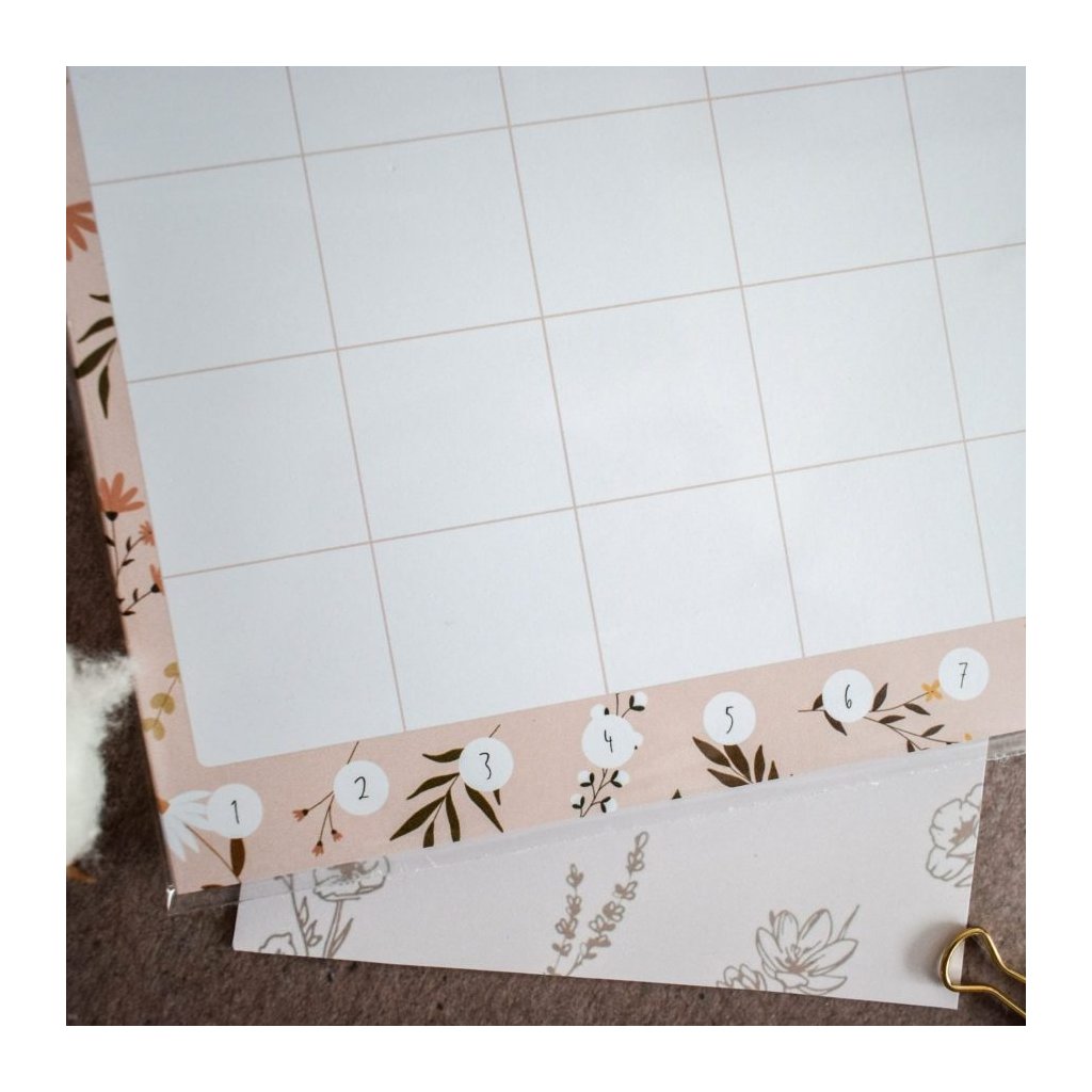 Pokud nejste zrovna fanoušci diářů, nepotřebujete plánovat úplně každý měsíc, nebo zkrátka potřebujete více přehlednou verzi, kterou budete mít stále na očích, je tu pro vás měsíční plánovač flower. Funguje na stejném principu jako diář, jen je určen spíše pro domácnost nebo třeba na pracovní stůl.