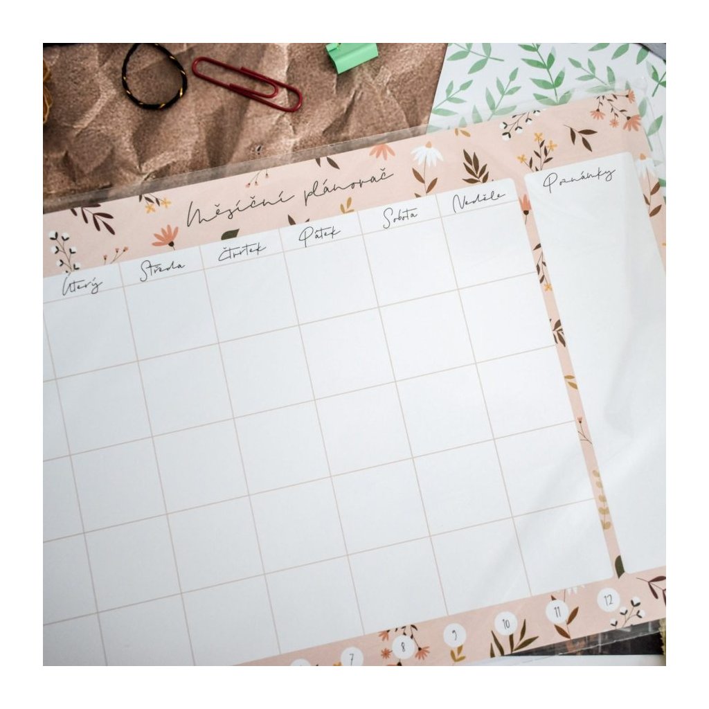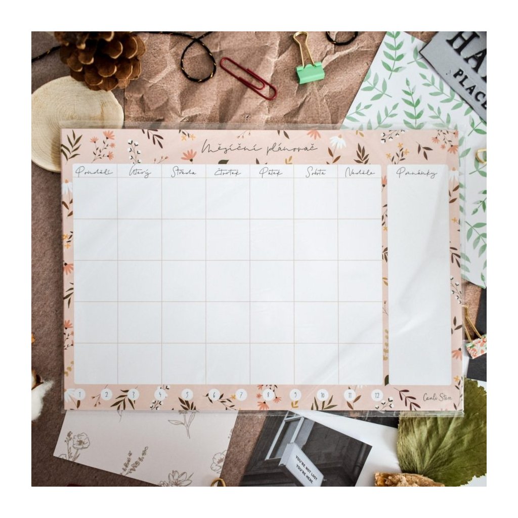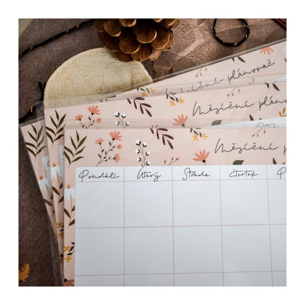 Pokud nejste zrovna fanoušci diářů, nepotřebujete plánovat úplně každý měsíc, nebo zkrátka potřebujete více přehlednou verzi, kterou budete mít stále na očích, je tu pro vás měsíční plánovač flower. Funguje na stejném principu jako diář, jen je určen spíše pro domácnost nebo třeba na pracovní stůl.