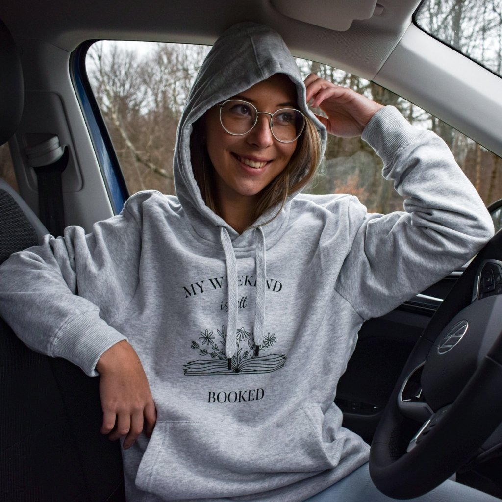 (Focené na postavě 154 cm velikost S, ale sedí mi i M, jen je více oversize). Mikiny jsou spíše delší pokud jste malinký jako já. Velikost M sedí ideálně na postavě +- 170 cm).