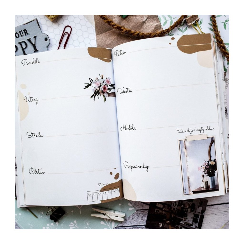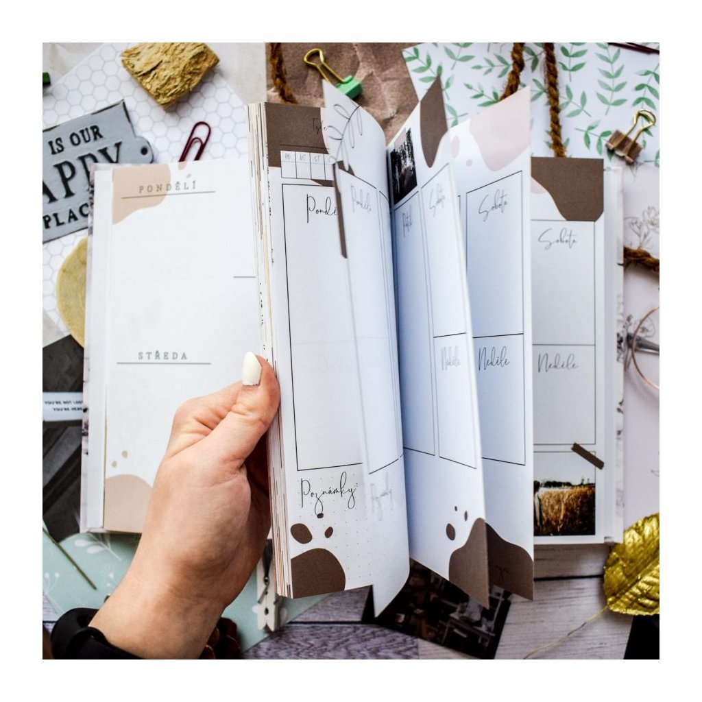 První Neobyčejný diář byl pouze v černobílém provedení a byl uzpůsoben spíše pro lidi, kteří si diář dokáží dotvořit kreativně sami. V hlavě se mi však postupně skládal nápad na koncept nového Neobyčejného diáře a tím je tento barevný diář. Následuji tak trochu bullet journal, kdy si vytváříte každý týden zvlášť a doplňujete, zdobíte, kreslíte vlastní obrázky. Maličko jsem vám pomohla, pokud nejste tak kreativní nebo nemáte čas, ale přesto chcete mít krásný diář, je tento právě pro Vás.