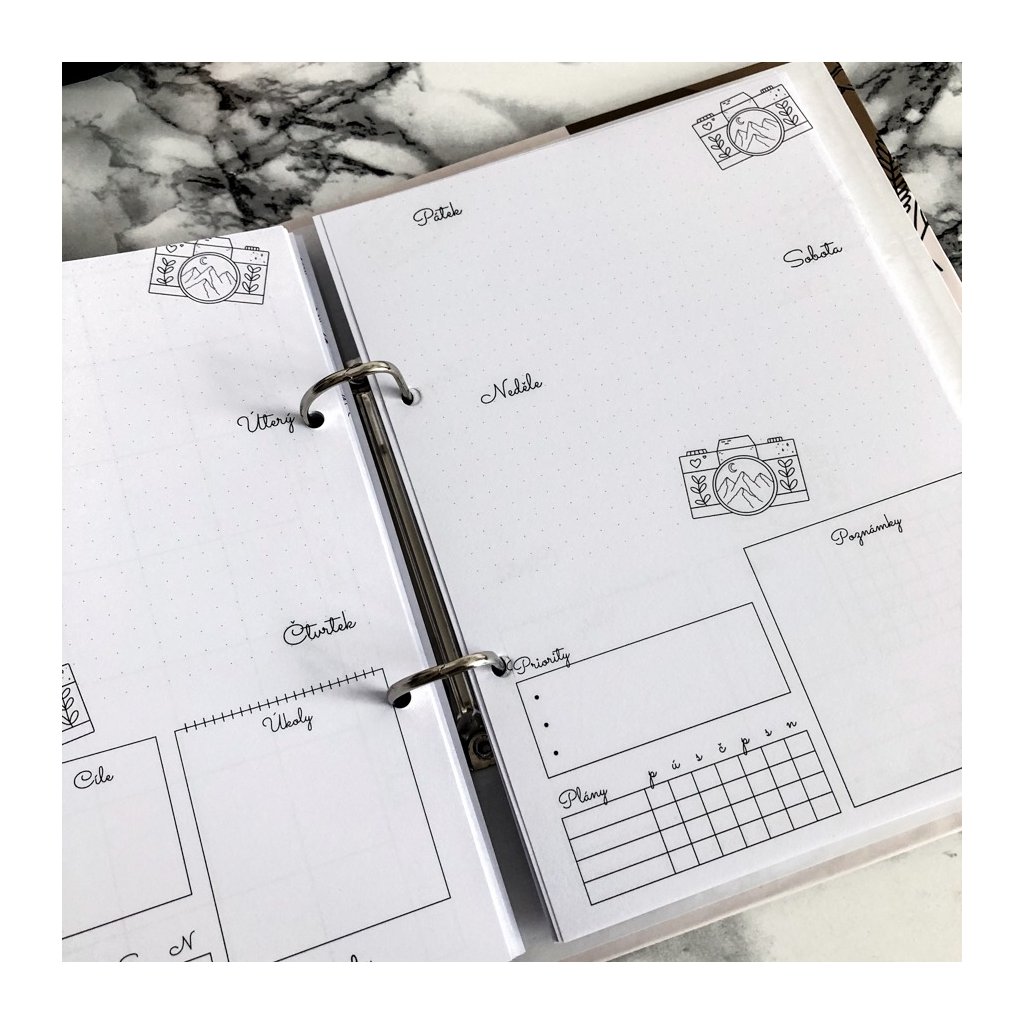 – Rozložení diáře ti pomůže mít lepší organizaci v životě, určíš si nejdůležitější cíle, priority a plány, kterých se chceš v daném týdnu držet. Díky tečkovaným stranám si také můžeš zvolit zda chceš čtverečky nebo linky (viz fotky) nebo psát jak budeš zrovna potřebovat.