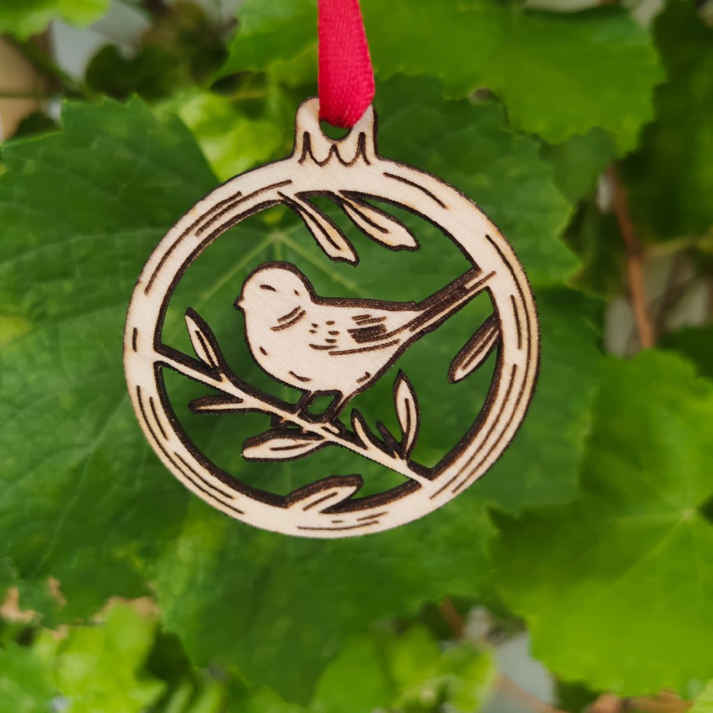 Nadčasový motiv ptáčka posedávajícího na jemné větvičce vytváří atmosféru klidu a harmonie. Design je do dřeva vypálený s pečlivostí, což dodává ozdobě jedinečný a autentický vzhled.