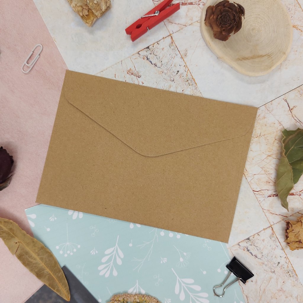 Součástí balení je hnědá/ přírodní obálka z recyklovaného papíru.