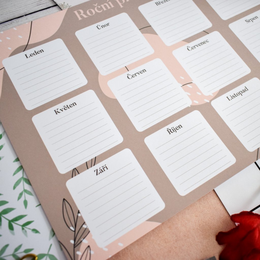 Rozměr je A4 (297 x 210 mm) na tvrdším papíru. Vhodný na pracovní stůl, lednici nebo kamkoliv se vám bude hodit.