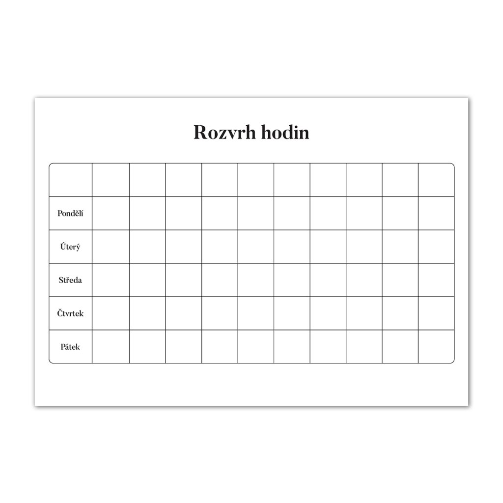Rozvrh hodin je natištěn na kvalitním matném 220g papíru, který disponuje certifikací FSC a PEFC. Vhodný pro tužky, pastelky, fixy, akvarelové barvy apod...