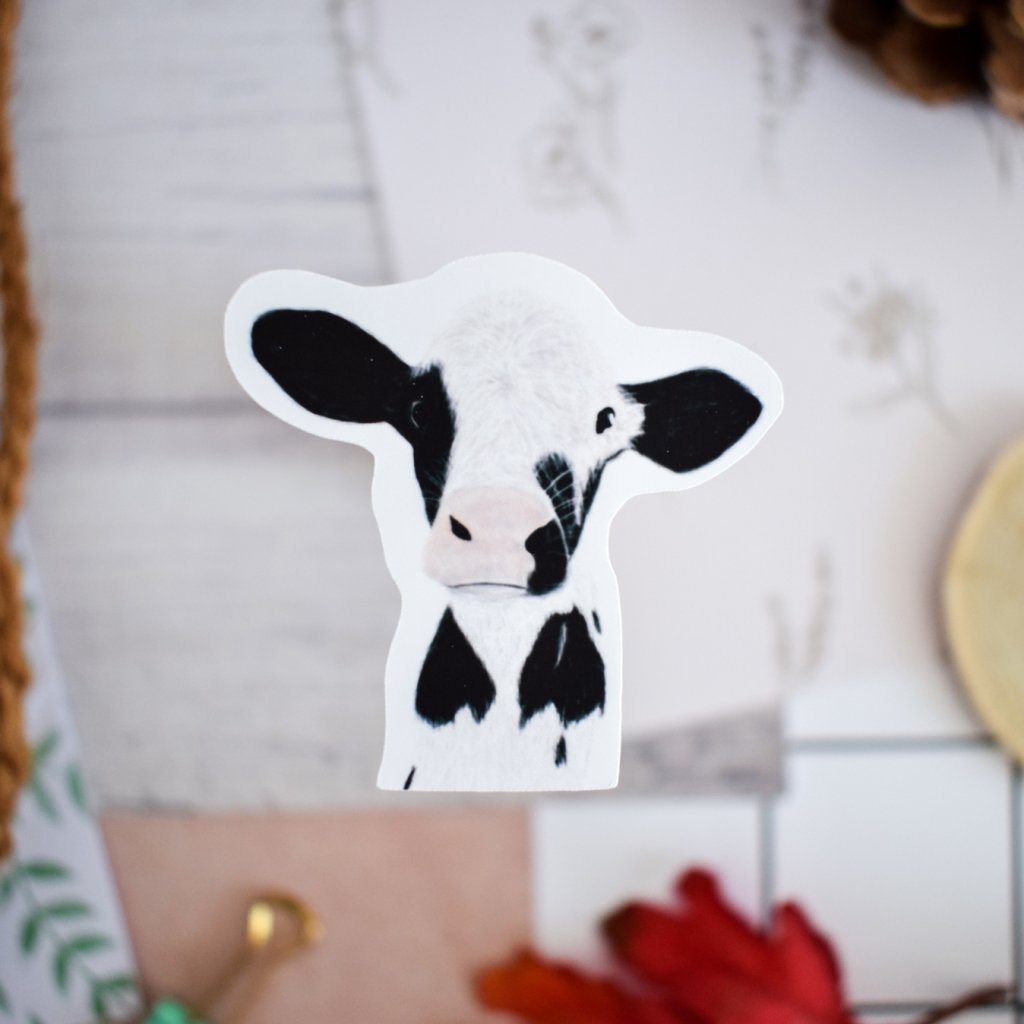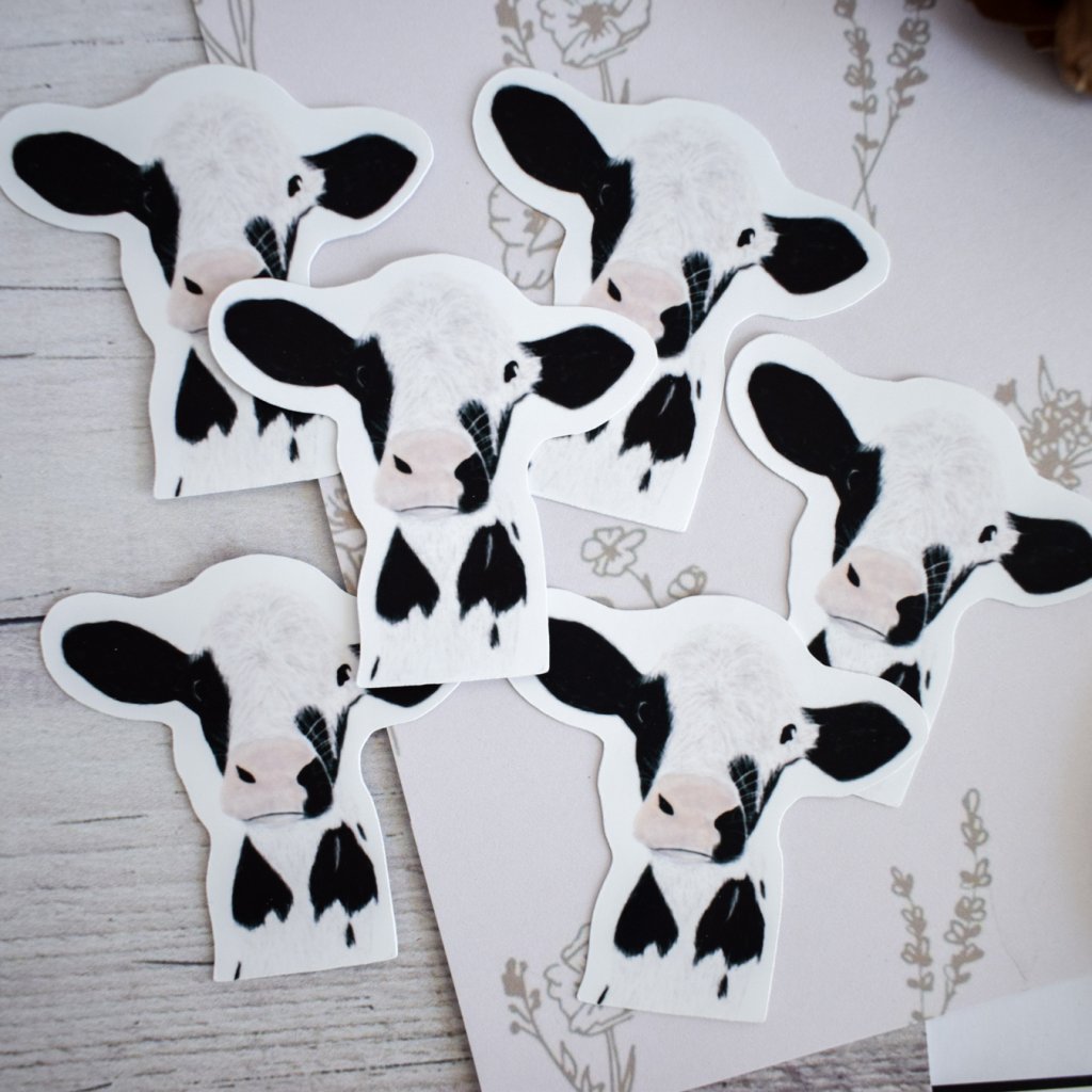 Z tohohle telete původně nemělo být vůbec nic, ale vám se tak líbila, že jste nám psali, ať s ním něco vytvoříme. Takže nakonec máme hned tři produkty... tahle samostatná samolepka tele, A6 aršík samolepek a plakát "Moochas Gracias".