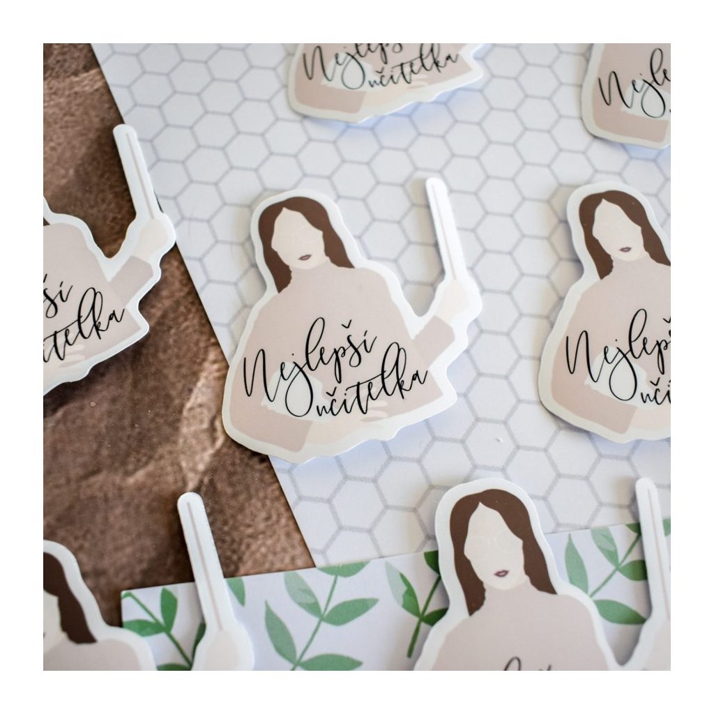 Ručně kreslená samolepka Učitelka o větším rozměru, kterou využijete nejen mezi zápisky, ale můžete si ji nalepit třeba na notebook, či obal telefonu. Získáte tak originální vzhled vašich osobních věcí, který jen tak nikdo nemá.