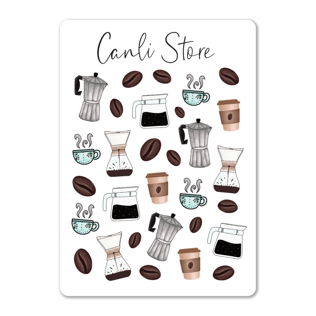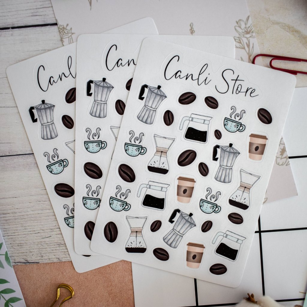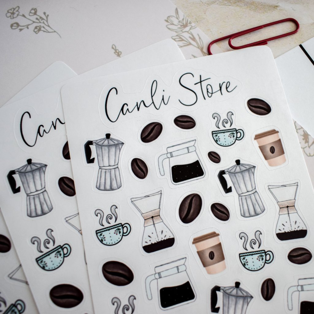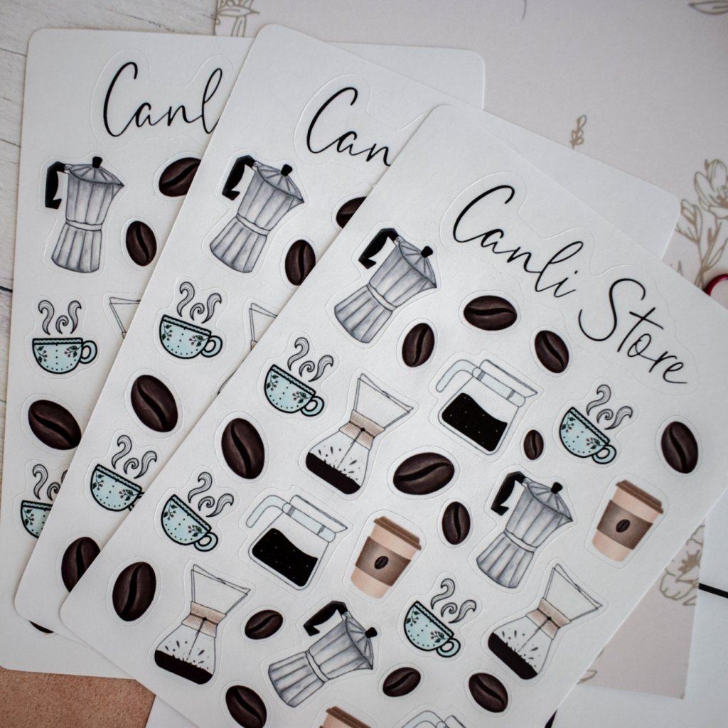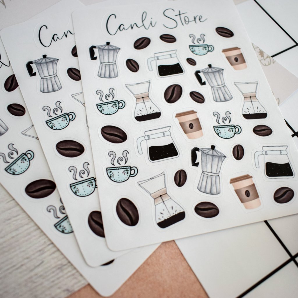 Ručně kreslené samolepky káva