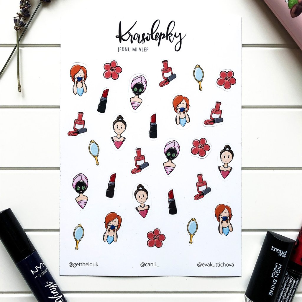Ručně kreslené samolepky pro vaší beauty rutinu.