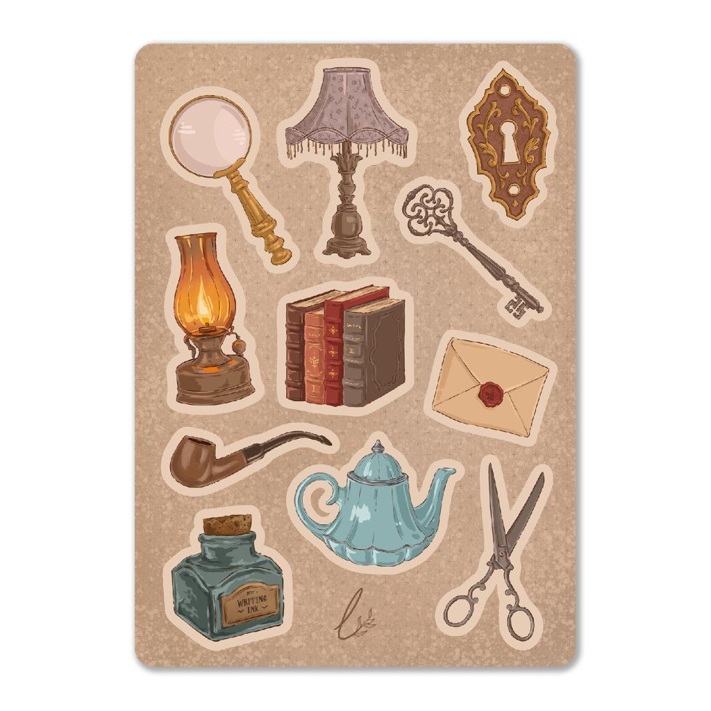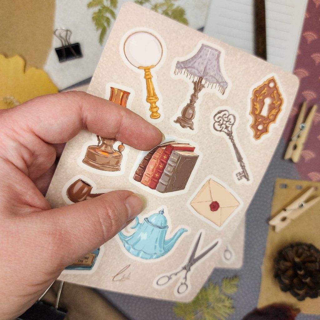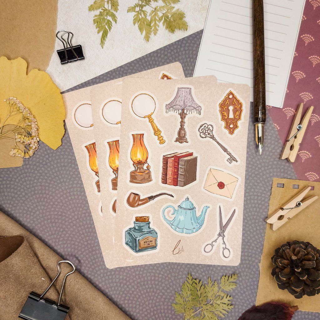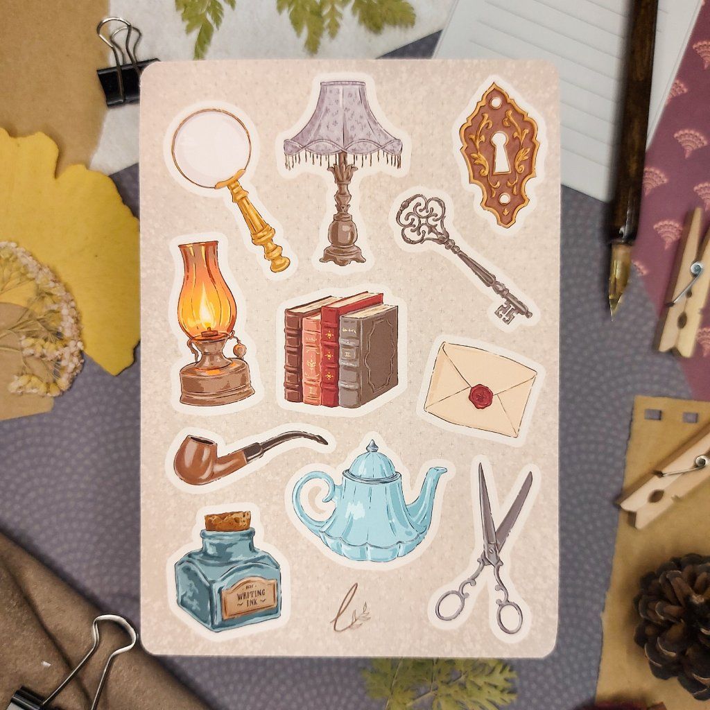 Ručně kreslené samolepky - Light Academia