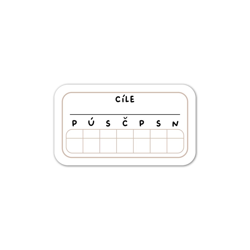 Jednoduše doplníte svůj cíl na daný týden a nalepíte na vybrané místo, následně odškrtáváte, zda jste ten den cíl splnili či nikoliv.