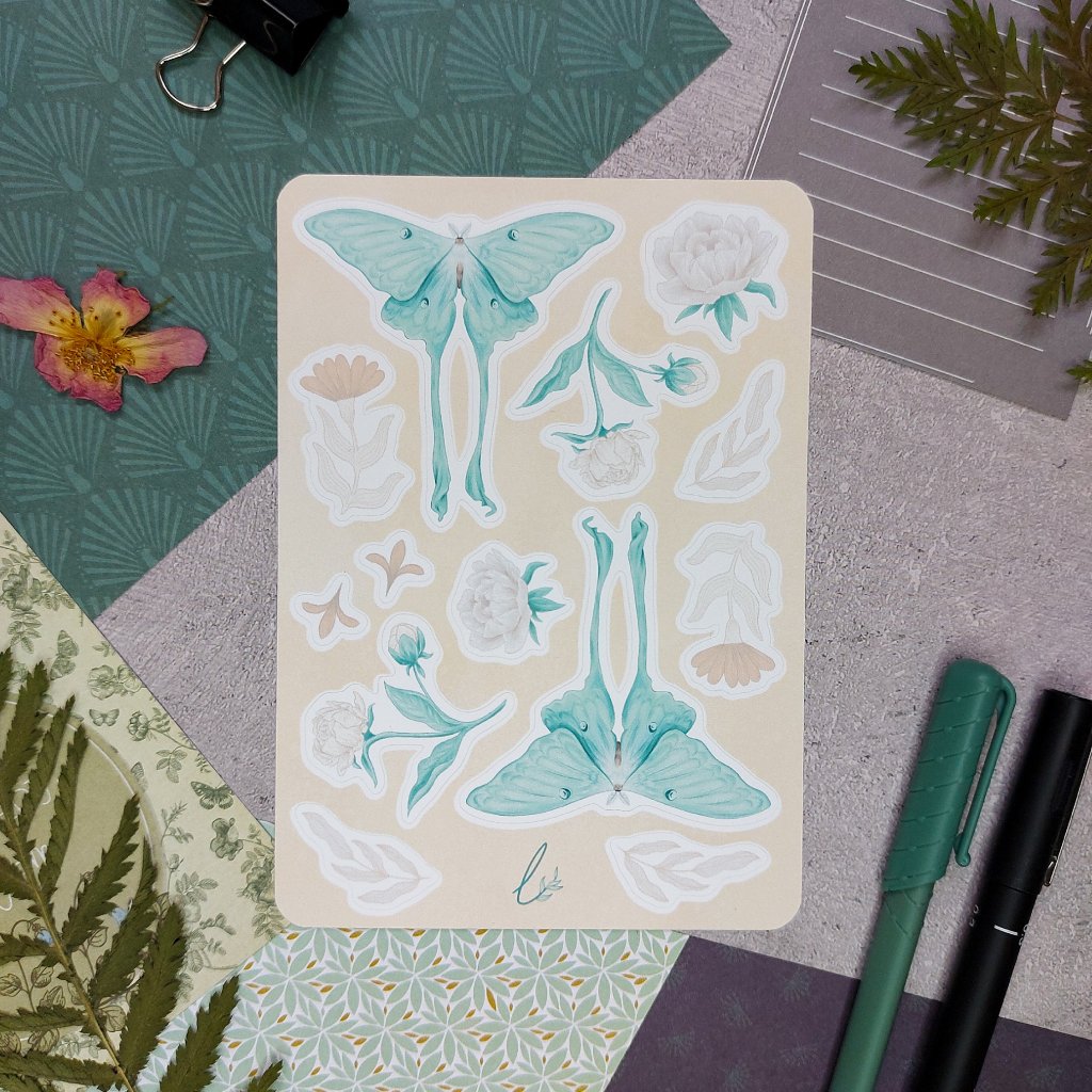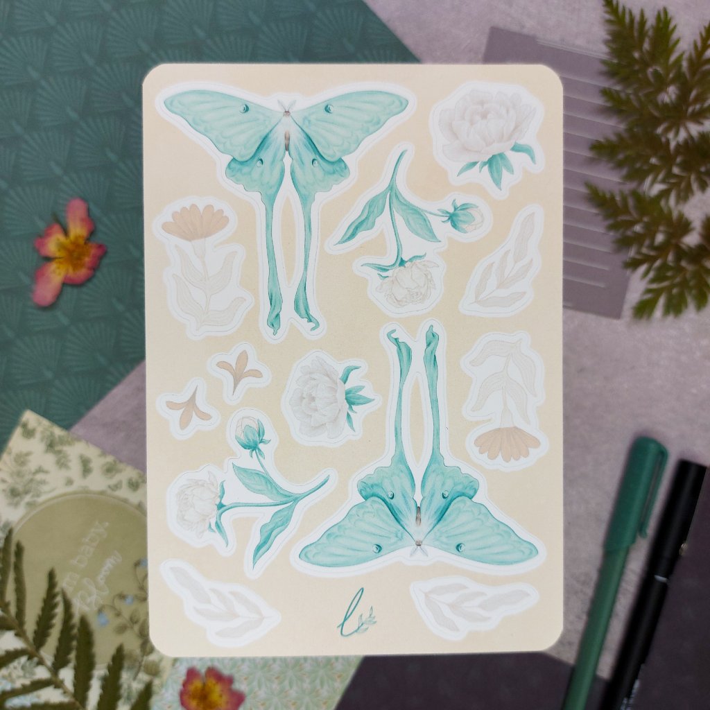 Designové samolepky byly vytvořeny k doplnění diáře 2025 Můra. Použití se však meze nekladou a můžete si ozdobit například notebook nebo kryt telefonu.