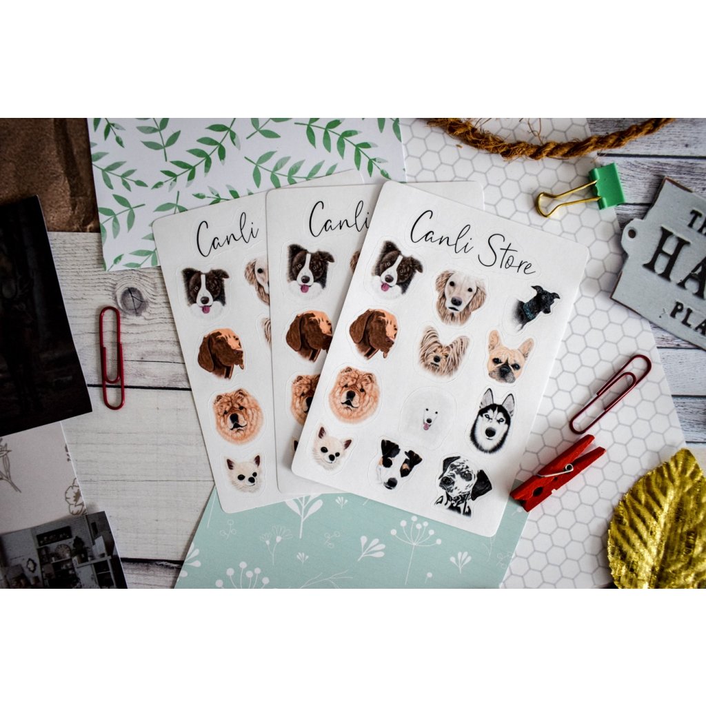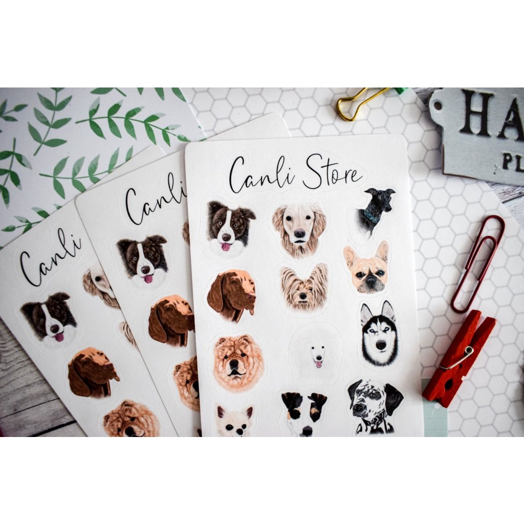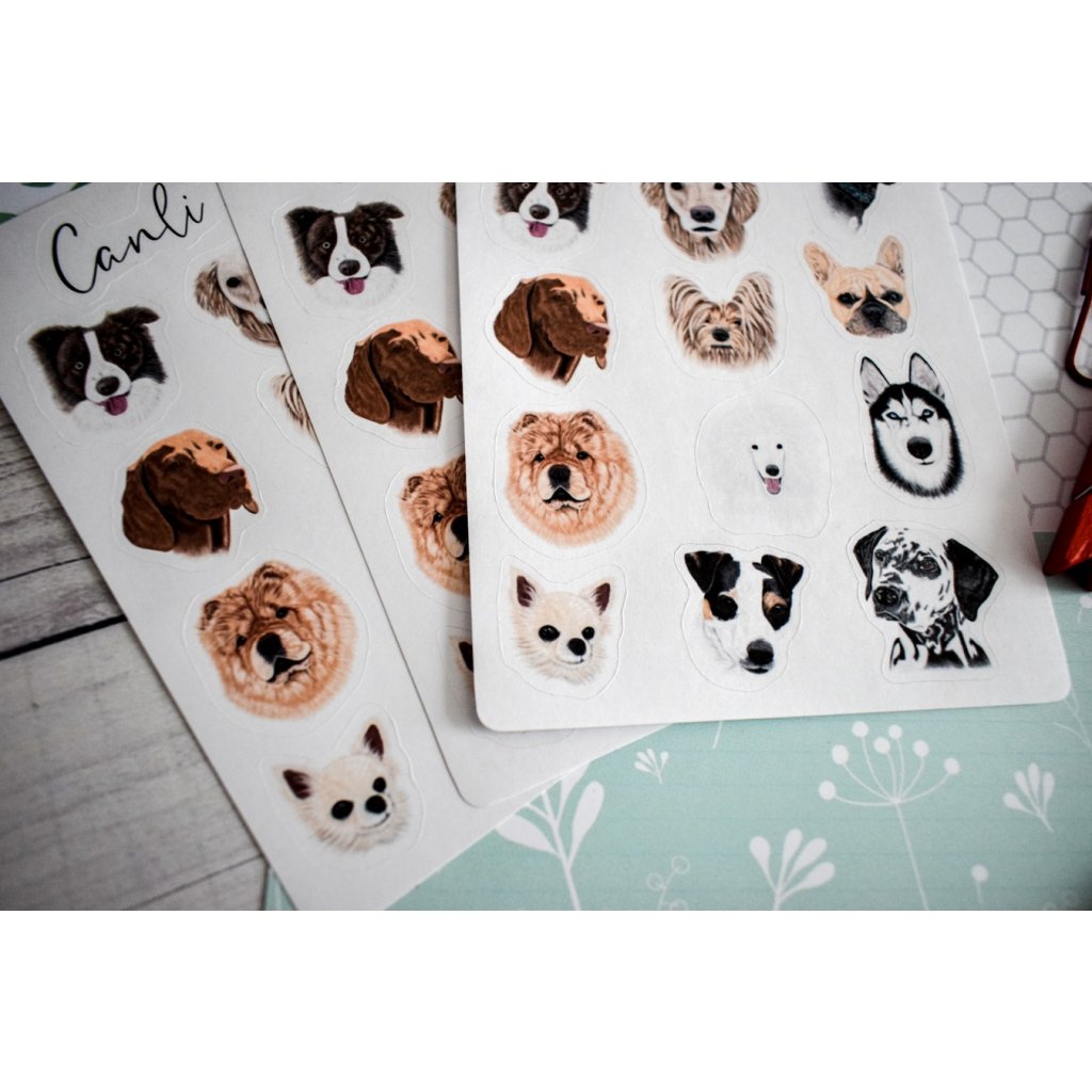Ručně kreslené samolepky psi
