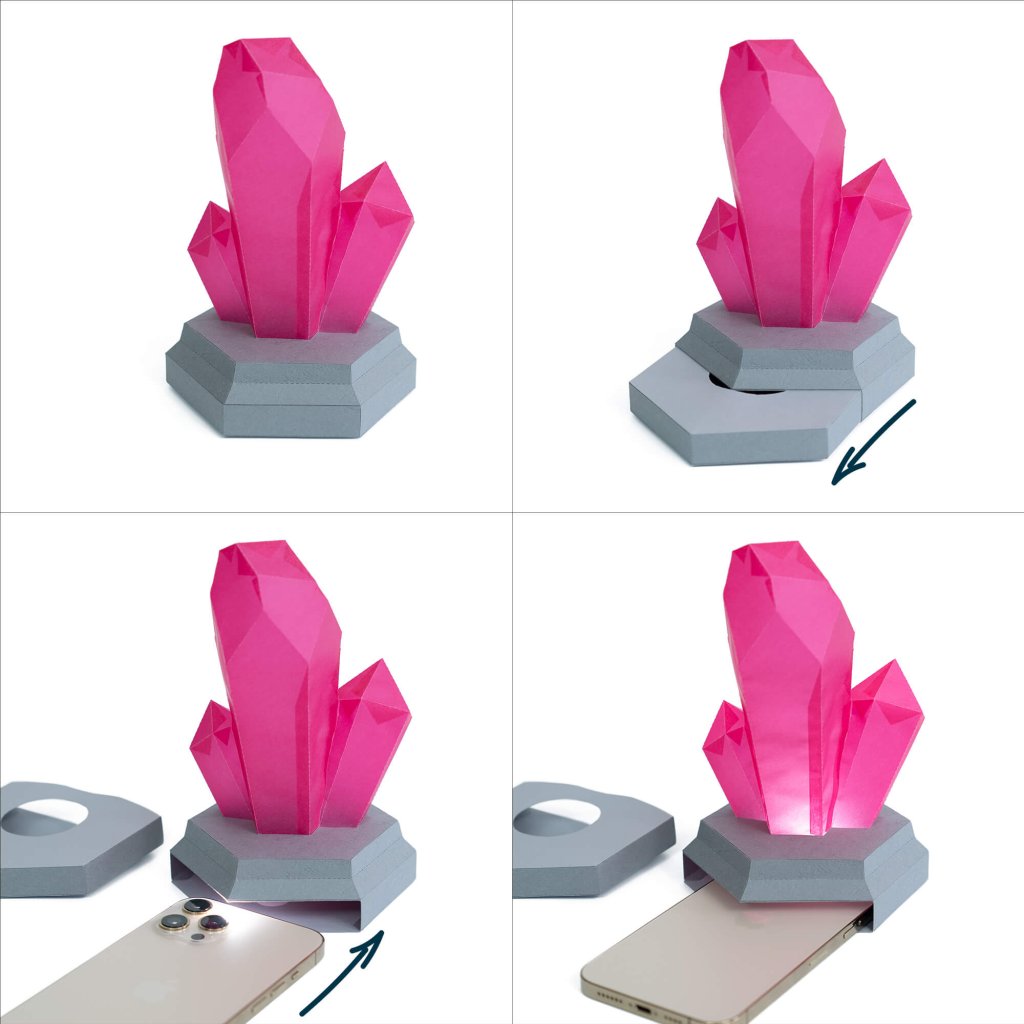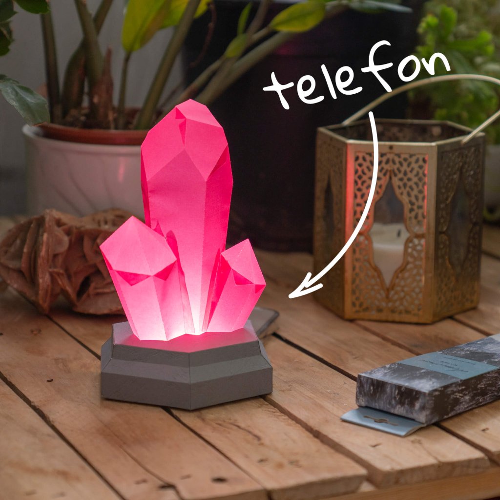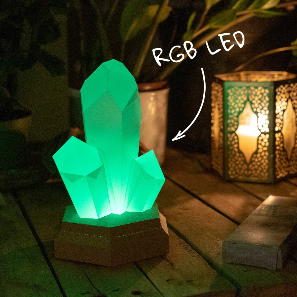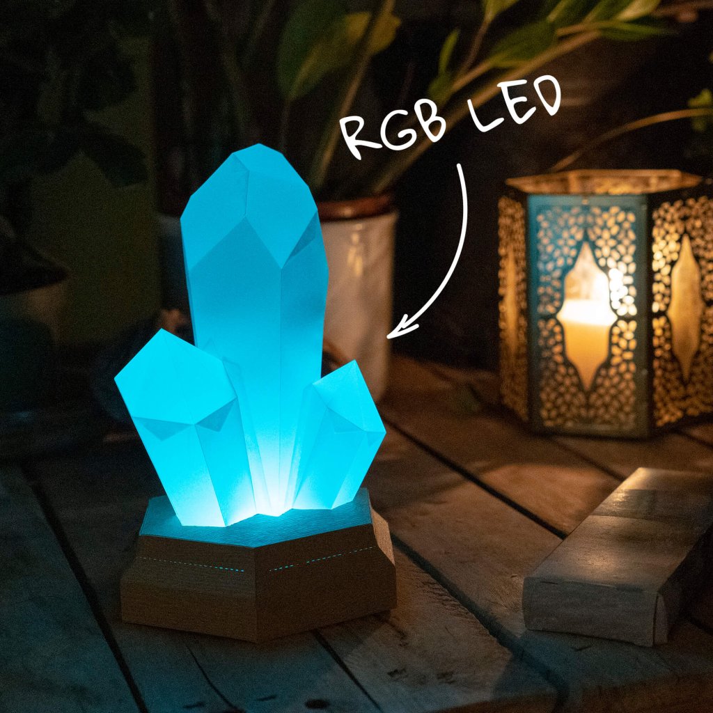 Tento krystal je nejen papírovým modelem, ale také krásnou dekorací a ambientní lampou navozující fantasy a útulnou atmosféru. To vše díky pauzovacímu papíru, který je průsvitný. Krystal rozsvítíš buď libovolným mobilním telefonem s rozsvícenou LED svítilnou (blesk fotoaparátu) nebo RGB světýlkem.