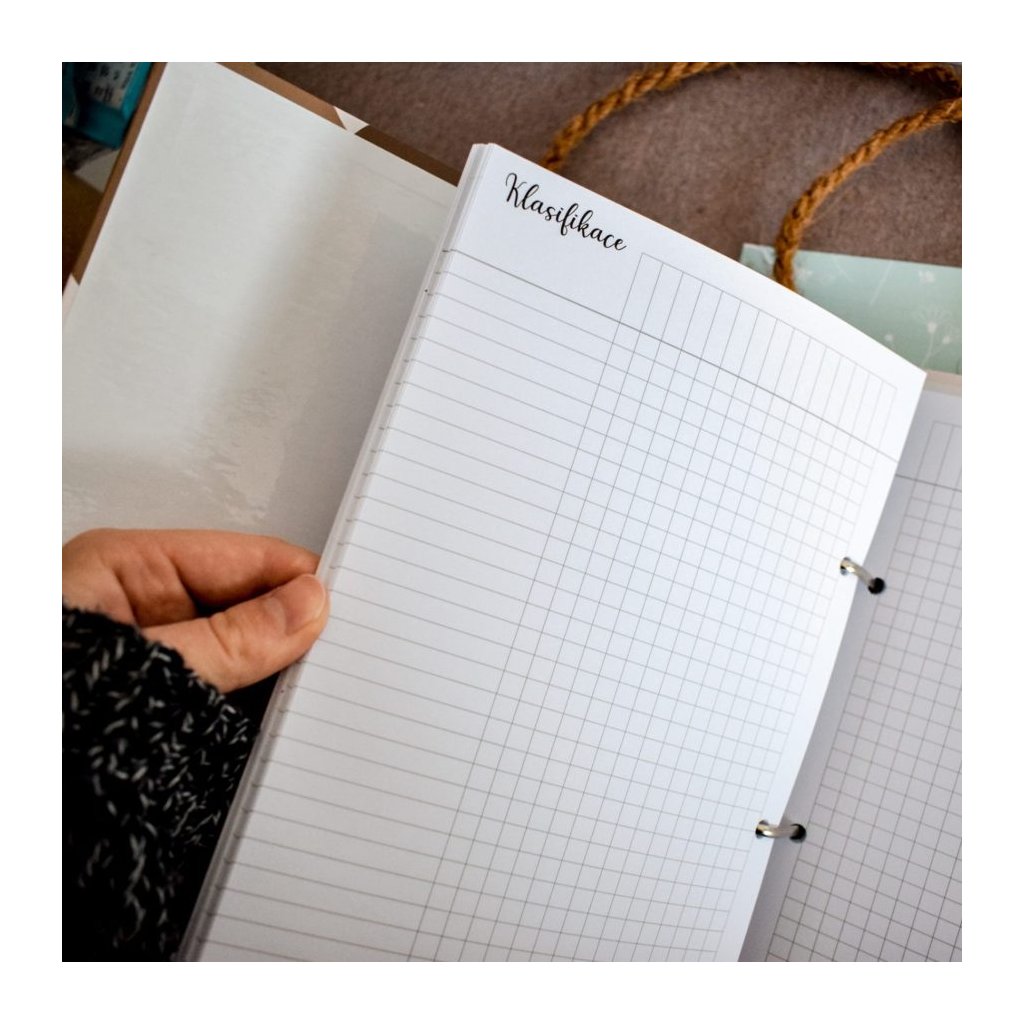 - rozdělená na Jméno/ číslo v třídním výkazu/ Kontakt na rodiče/ Alergie a léky žáka/ Pochvaly, důtky - Klasifikace - 34 řádků na jména na jedné dvoustránce (68 stran - na druhé stránce je vždy možnost odstřižení části se jmény a tím propojíte přehledně jeden předmět na více stránek) - na rozdělení doporučujeme použít štítky, díky kterým se budete snadno orientovat v zápisníku