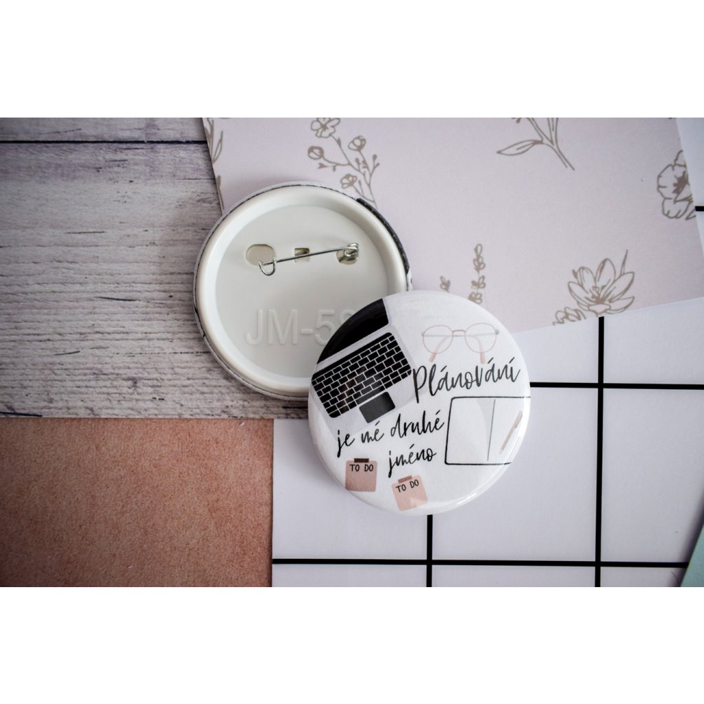 Pořiďte si placku s autorskou ilustrací, aby každý hned věděl, že plánování je vaše druhé jméno!