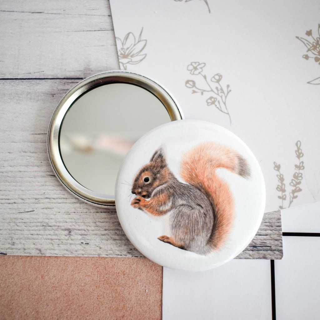 Malé a roztomilé, milé a popelavé – přesně to vystihuje veverky, a to i tu na našem zrcátku. :) Ať už jste jejich milovníkem, ladíte všechny doplňky do podzimní tematiky, nebo jen hledáte praktické a originální zrcátko, natrefili jste na správný produkt. Zrcátko schováte díky jeho kapesní velikosti do každé kabelky či batohu a uvidíte, že se vždy najde situace, kdy jej rádi využijete – ať už budete třeba na cestách, nebo vás bude čekat důležitá schůzka. Naše zrcátka navíc vynikají originálními autorskými ilustracemi, kterými můžete potěšit nejen sebe, ale třeba i někoho blízkého.
